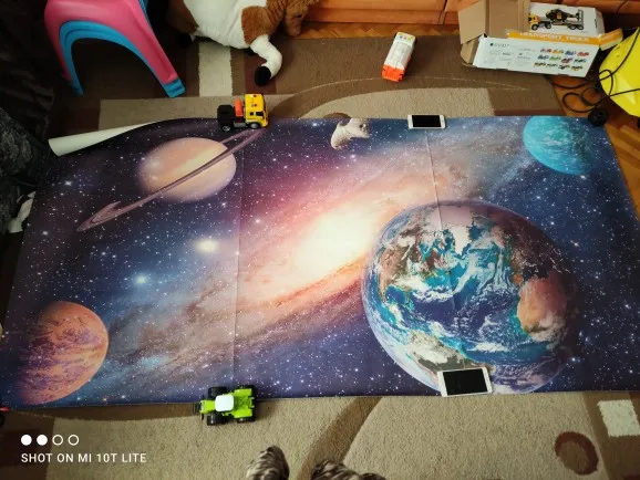 le papier est épais et semble de bonne qualité. L'impression rend bien sans être excellente. Il y a une erreur de proportion sur une des planètes qui crée un décalage sur un des raccords.