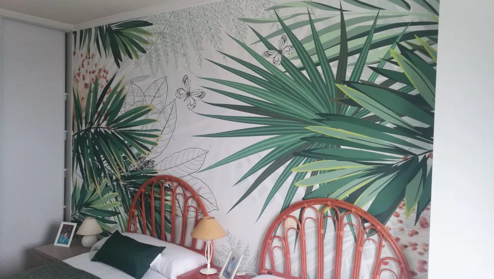 Papier peint Mural moderne 3D peint à la main, plantes tropicales, forêt, feuilles de palmier, décoration