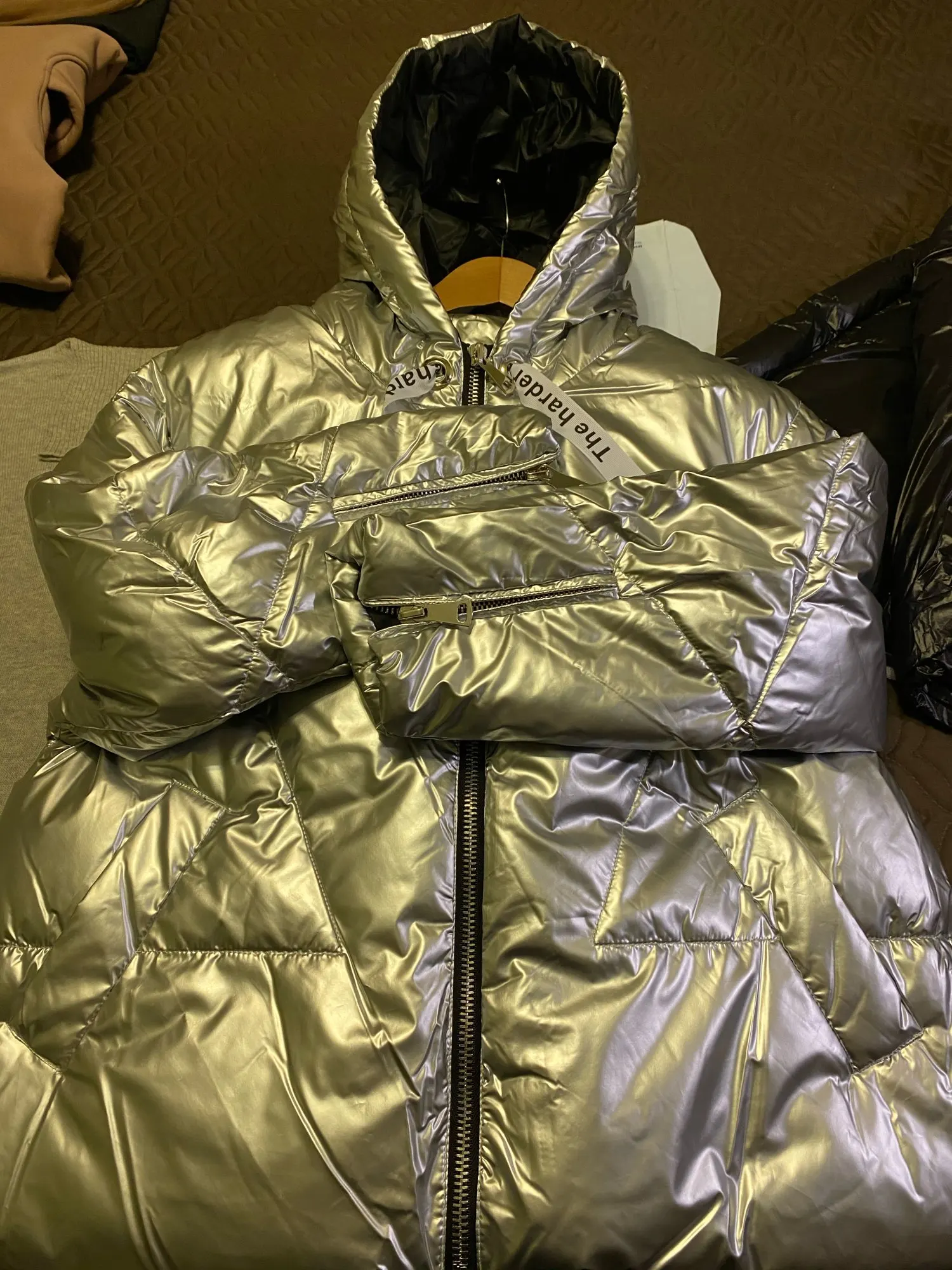 Parka à capuche pour femme, manteau brillant, fermeture éclair, grande taille, chaud et épais, nouvelle collection hiver