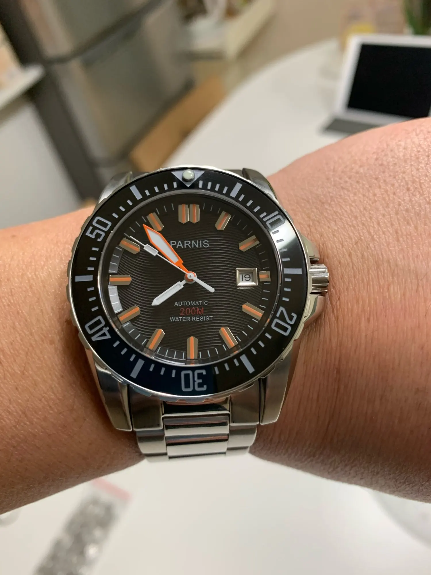 Analog/auto date/luminous hands (parnis 43mm, 43mm parnis, parnis)