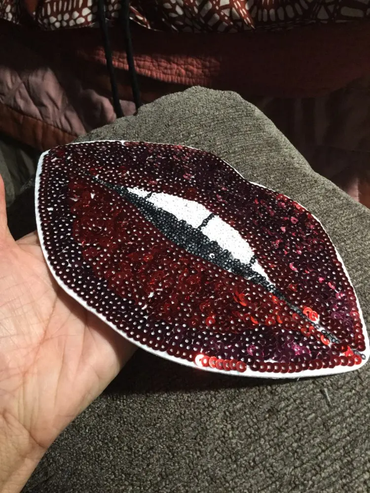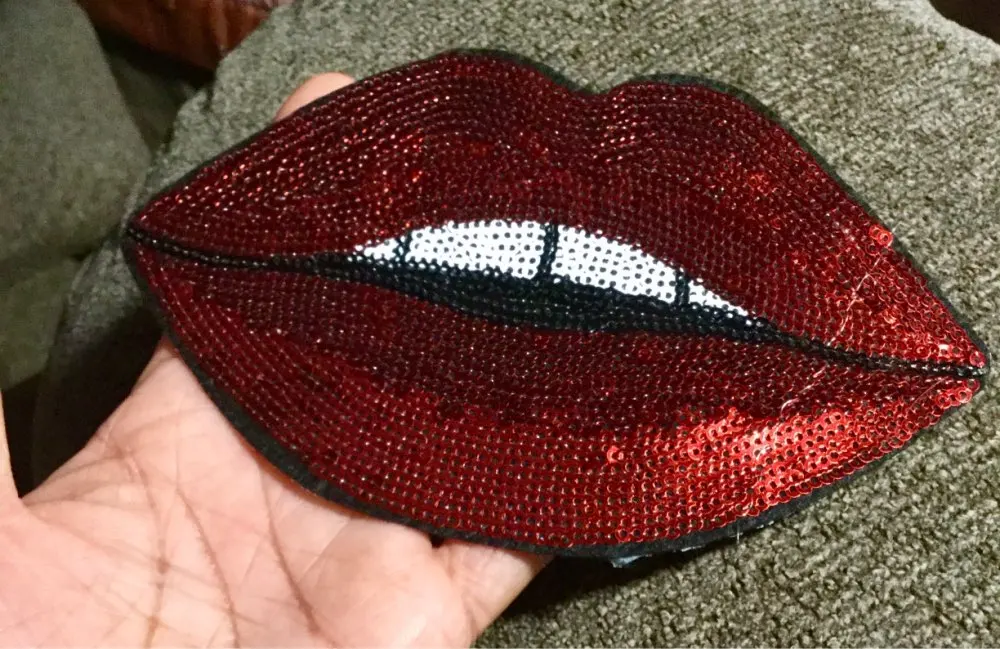 Patchs adhésifs à lèvres rouges, motif de dessin animé unique, à rayures, pour bricolage, accessoires de vêtements, vente 1 pièce, 2016
