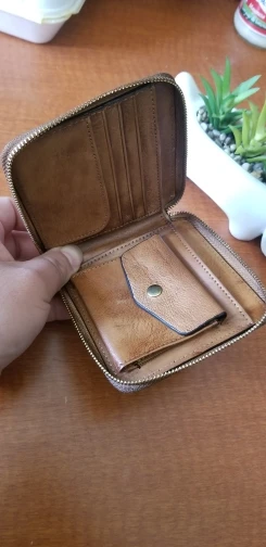 Peau naturelle femmes fermeture à glissière sac à main multi-porte-carte pratique monnaie poche rétro à deux volets en cuir véritable embrayage Mini portefeuille