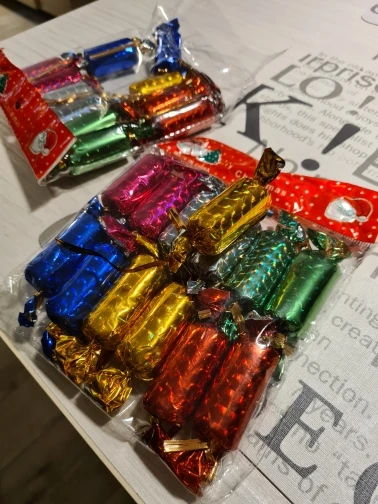 Pendentif bonbon en forme d'ellipse pour décoration d'arbre de noël, 24 pièces/ensemble, décoration de mariage pour journée des enfants, cadeaux décoratifs de fleurs
