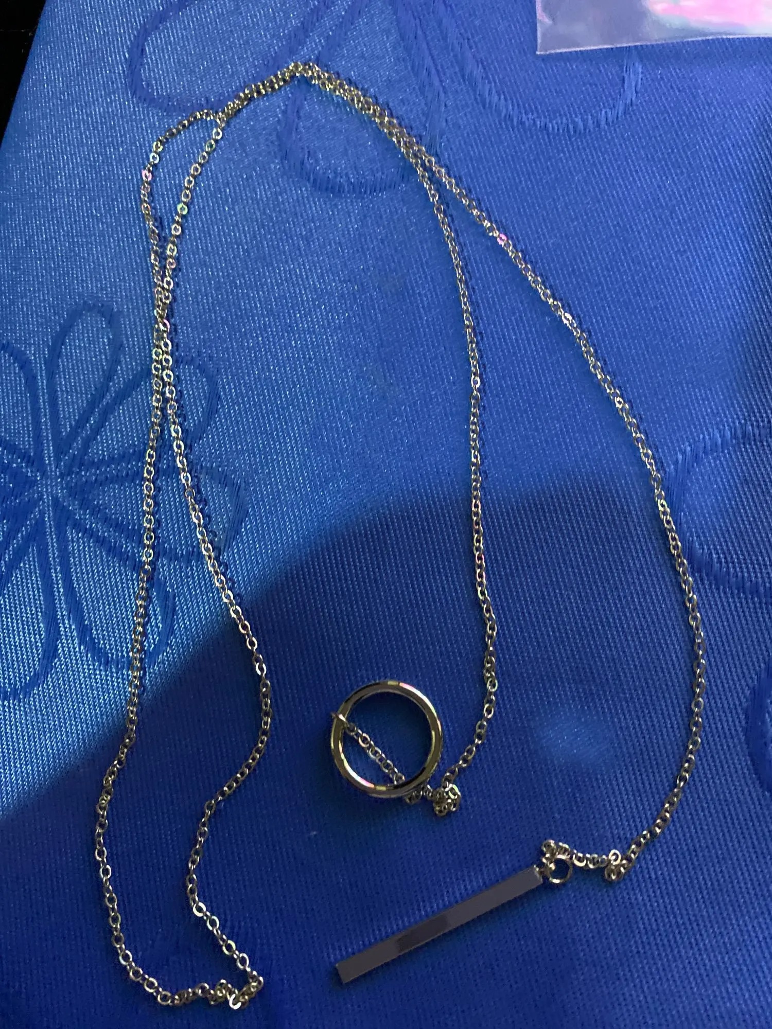très joli, moderne, faire attention quand on le range la chaîne s'embrouille vite, reçu à la date proposé