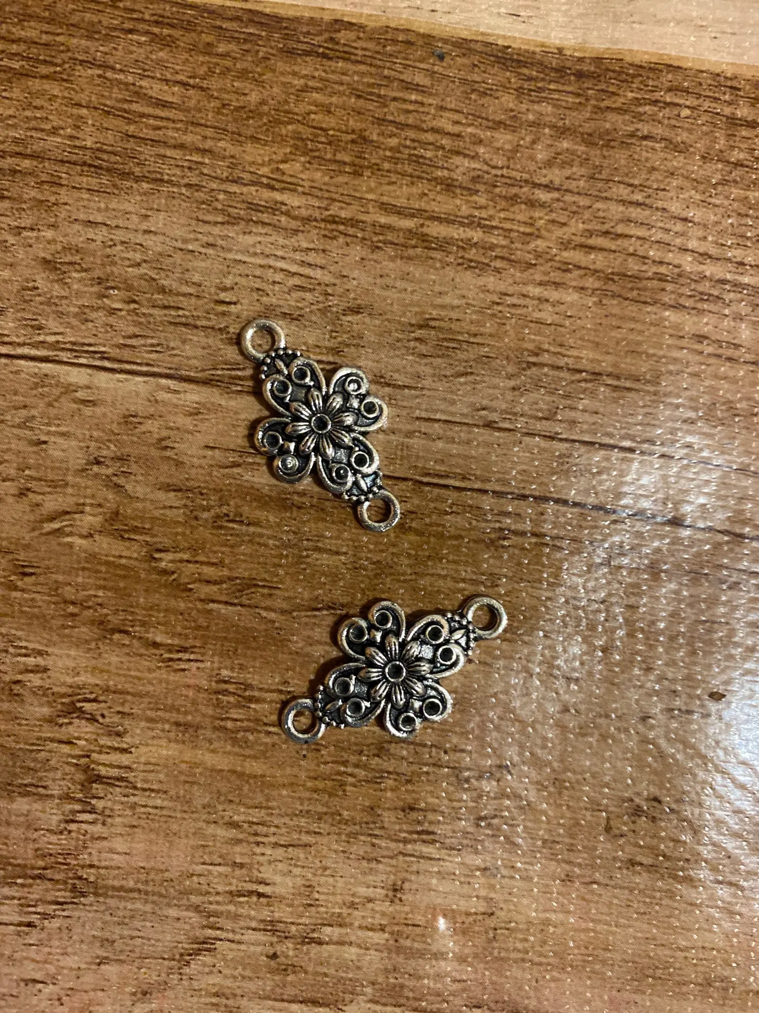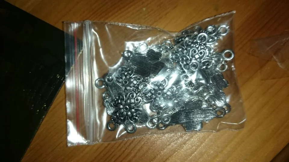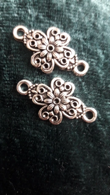 Pendentifs à fleurs couleur argent tibétain, 15 pièces, connecteurs