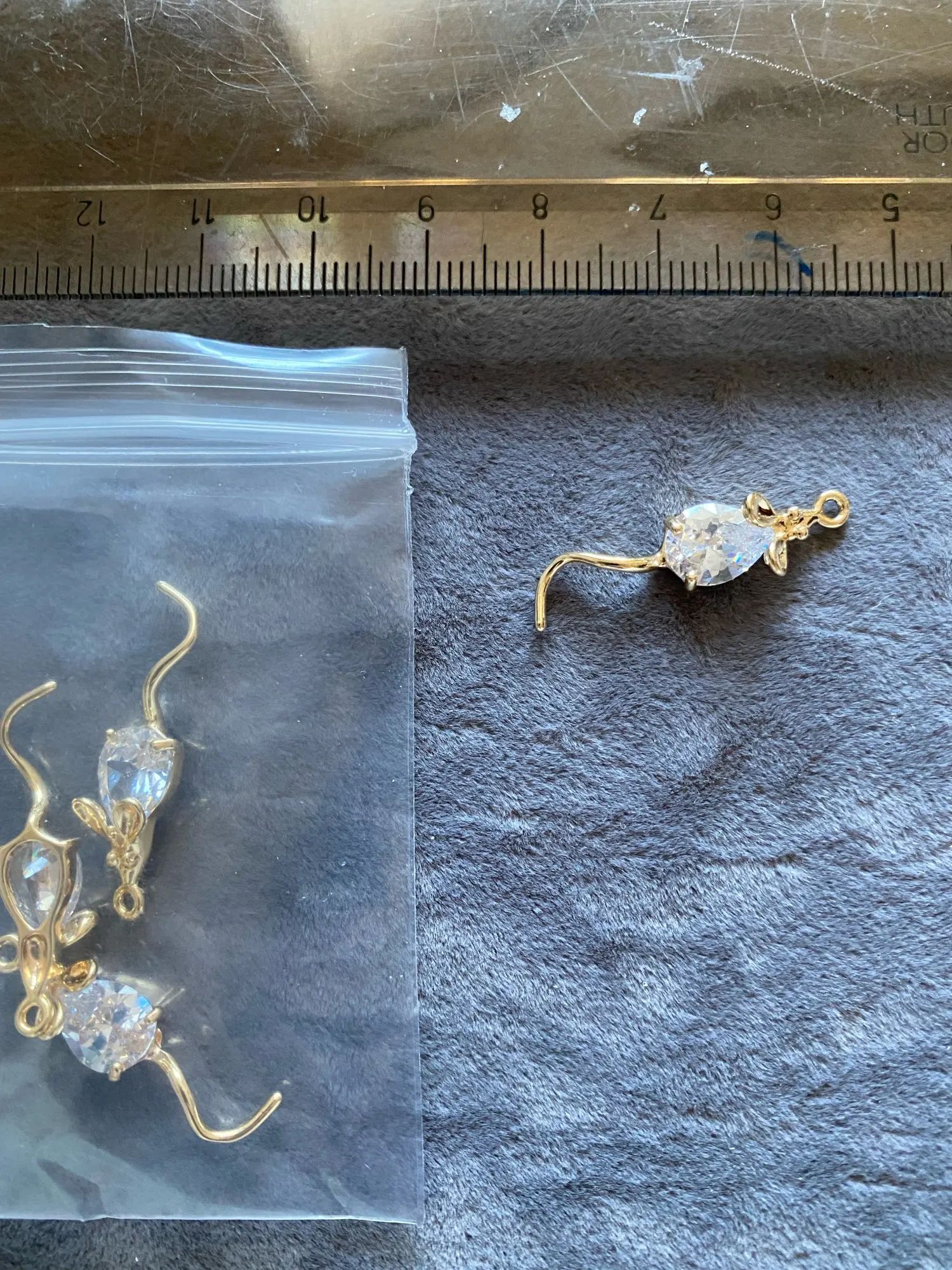 Pendentifs de souris en Zircon plaqué or 28x7MM 24K, 4 pièces, accessoires de haute qualité, fabrication bijoux à bricoler soi-même