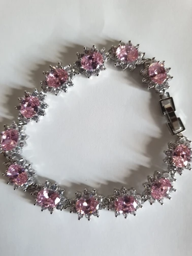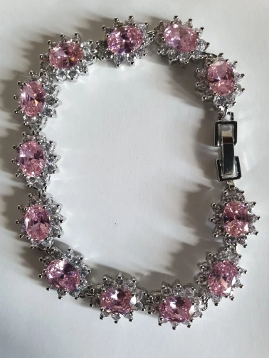 Pera élégant en argent Sterling rose clair Cluster fleur forme grand zircon cubique pierre bijoux Bracelet Bracelet pour les femmes B013