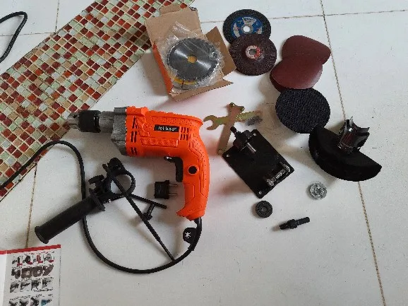 Perceuse électrique + 17 pièces 13mm perceuse électrique coupe siège outil de Conversion accessoires avec meule pour poinçonnage/polissage
