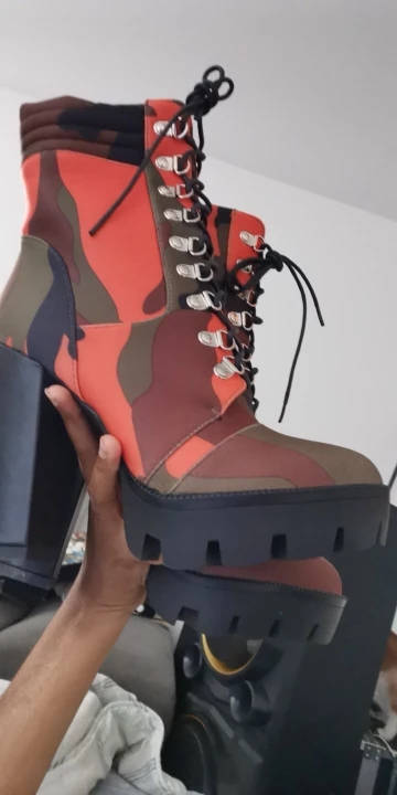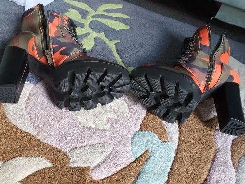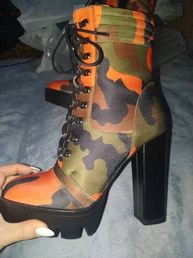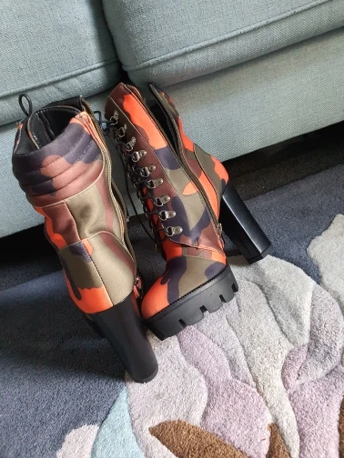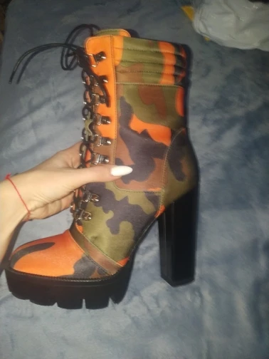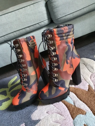 Perixir – bottines à lacets pour femme, chaussures à talon épais, imprimé Camouflage, bout rond, talon bloc, mi-mollet, boîte de nuit, hiver