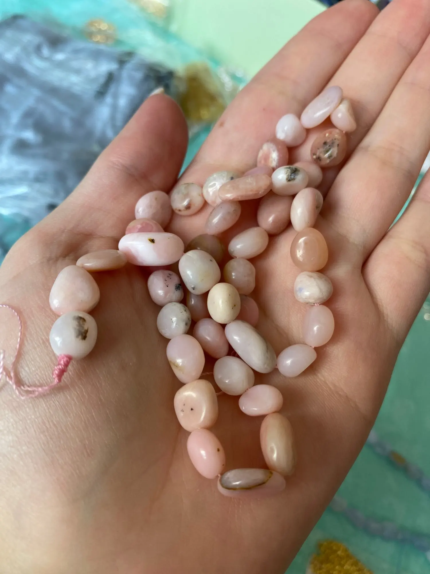 Les pierres sont arrivées parfaitement emballées , les brins séparés. Les pierres sont jolies , même appréciation pour les autres pierres.