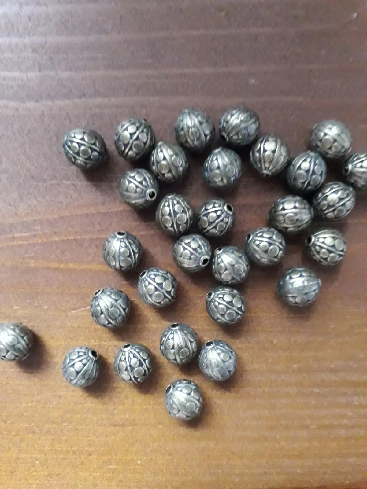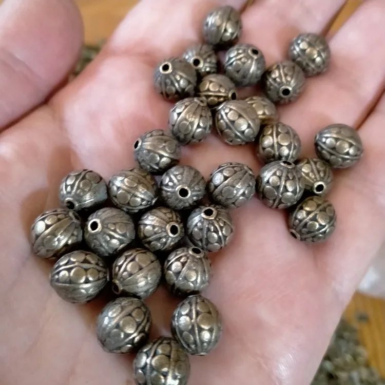 Perles d'espacement en boîte Doreen, 30 pièces, boule ronde à rayures et points en Bronze Antique, perle sculptée pour la fabrication de bijoux, bricolage, 10x9mm, trou: 1.5mm