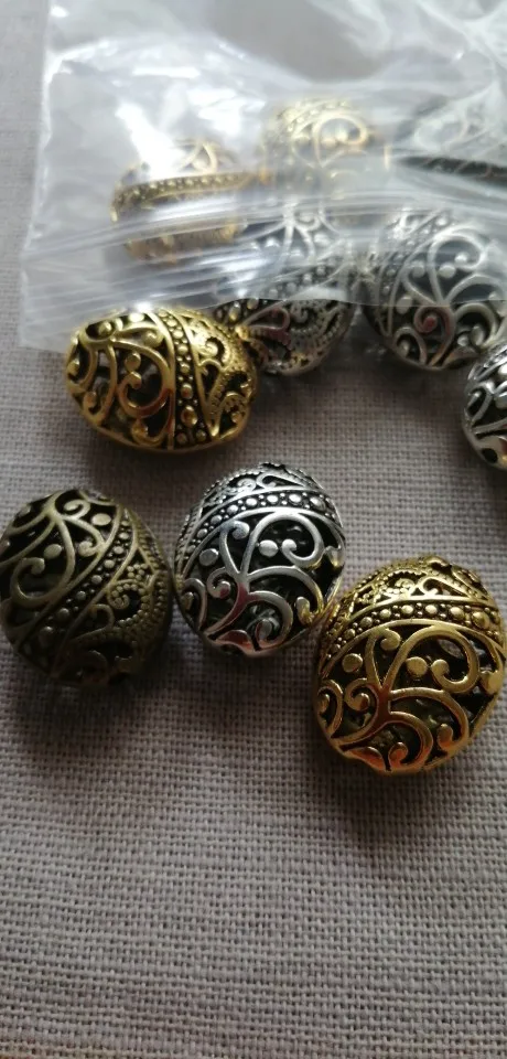 Perles d'espacement ovales tibétaines, 22x17mm, 10 pièces, argent/Bronze/or, pour bricolage, breloques en alliage, Bracelets, accessoires, fabrication de bijoux