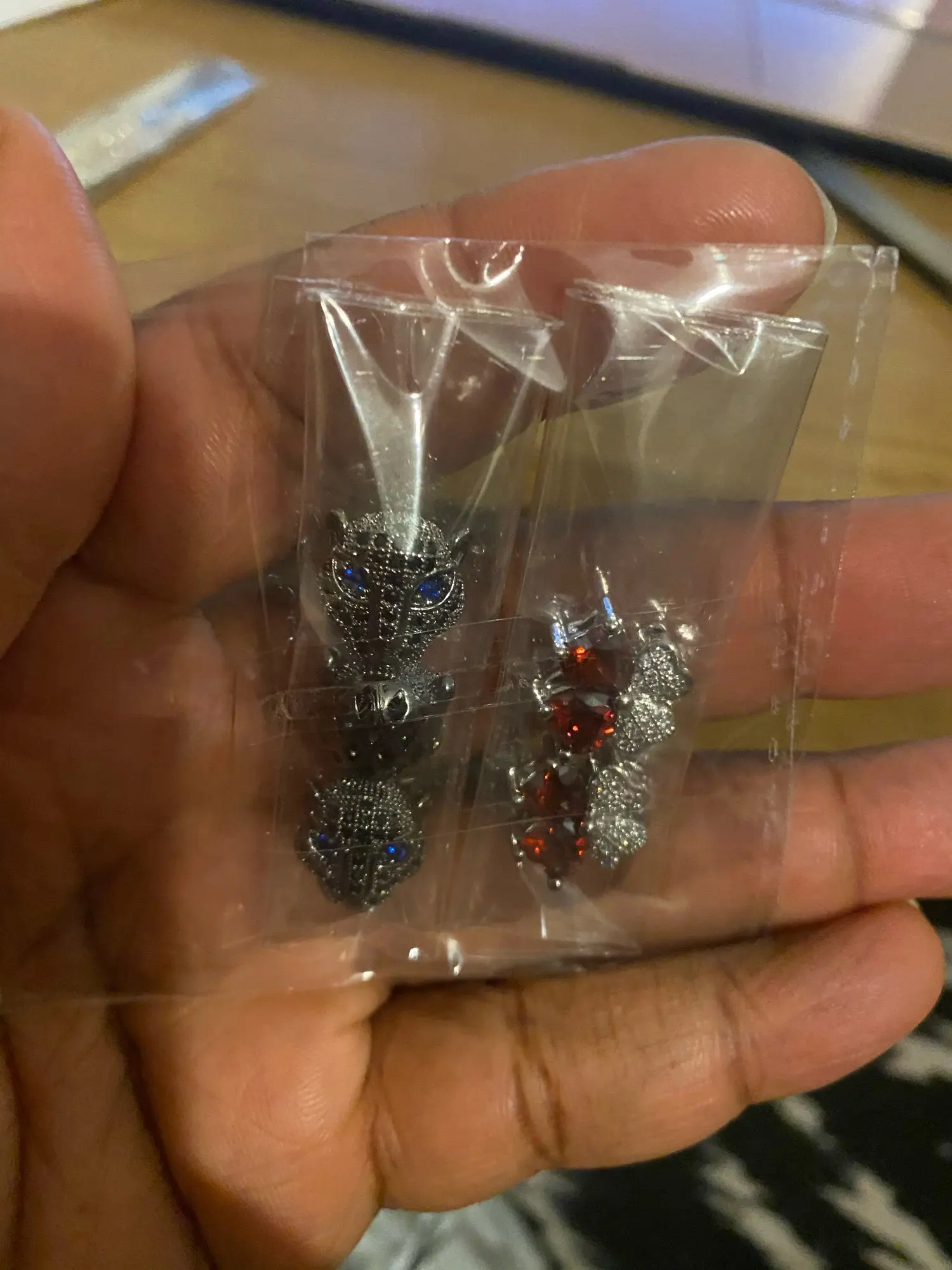 Conforme. Étonnamment petits. Délicats. En cas de problème de solidité, ou d"évolution de la matière, ou d'une mauvaise réaction cutanée, je laisse un autre message ici. Livraison correcte. Vendeur sympathique qui fait attention à la qualité de ses produits. Ce qui se ressent dans ces objets.
