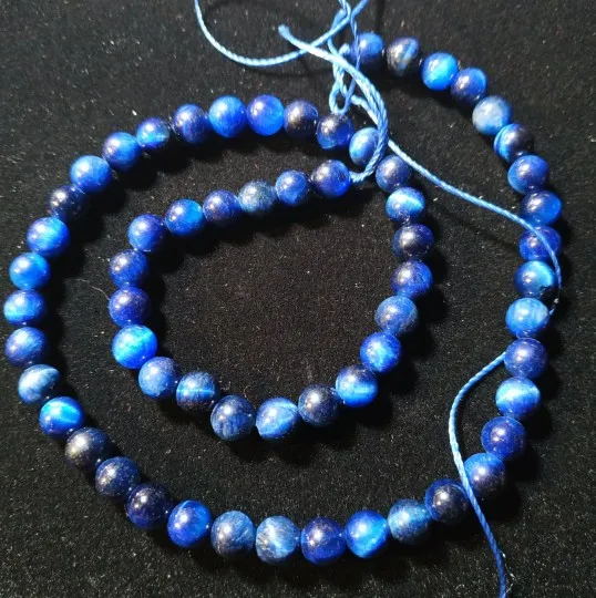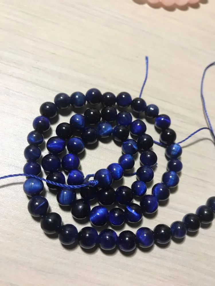 Perles rondes œil-de-tigre bleues, saphirs, pierre naturelle pour la fabrication de bijoux, taille, 15 pouces, 6, 8, 10, 12mm, bracelets gemmes