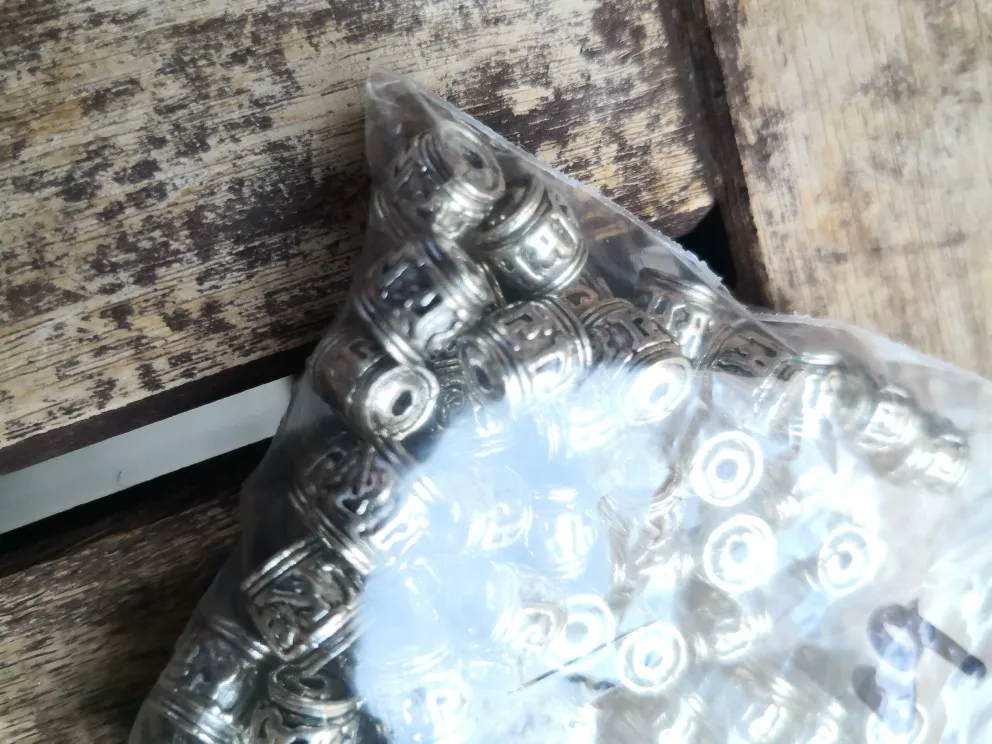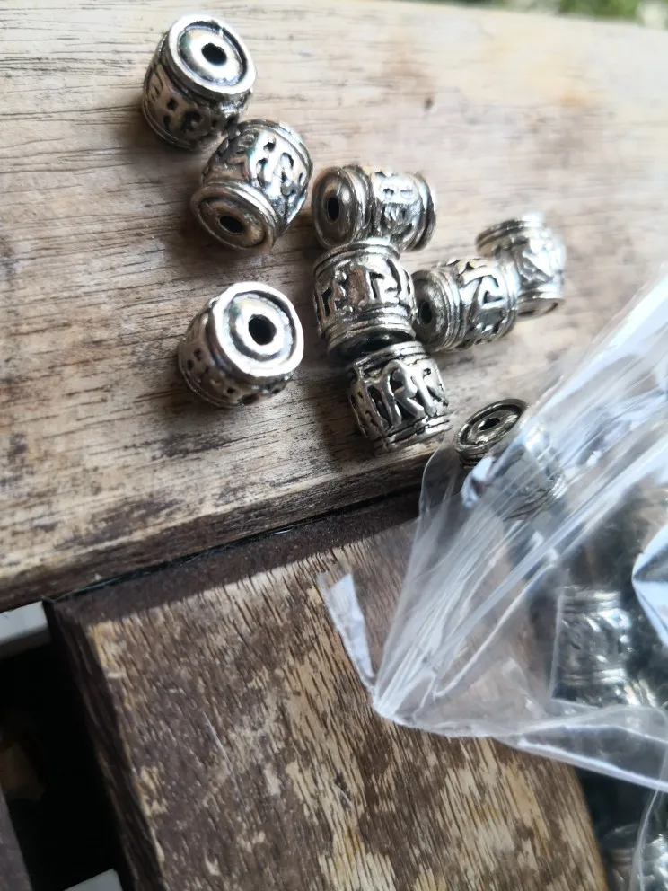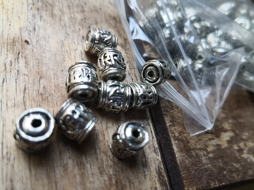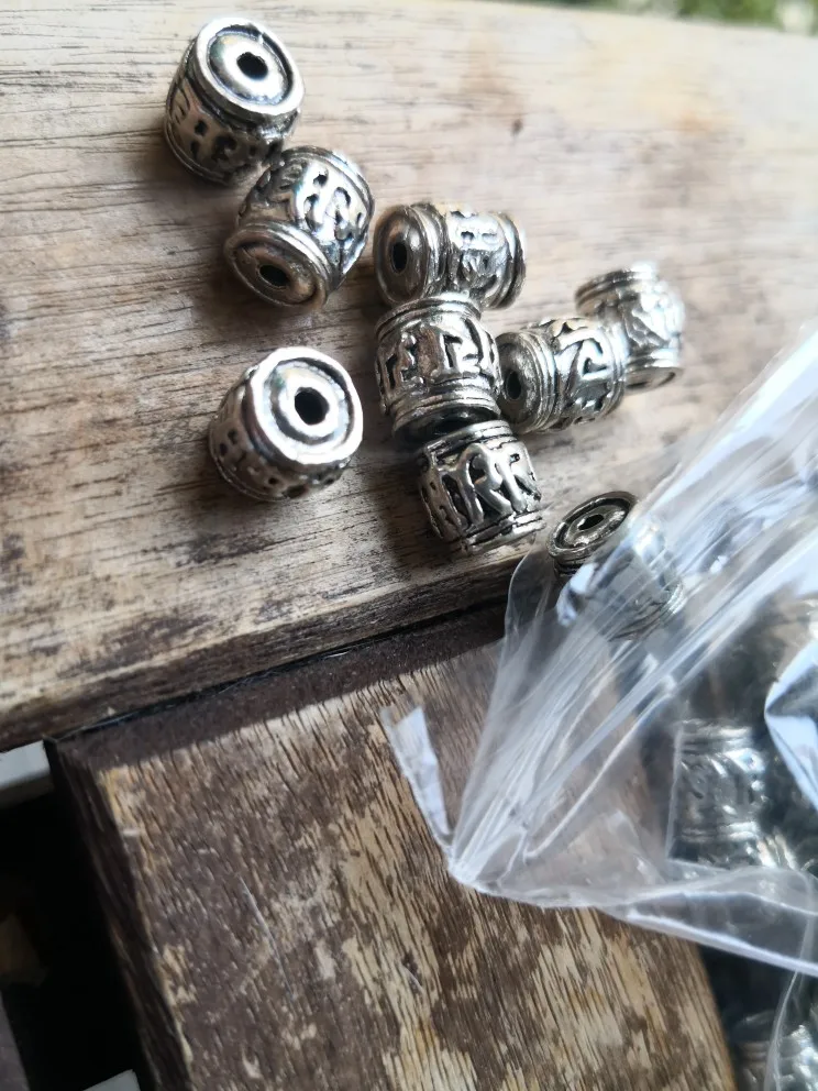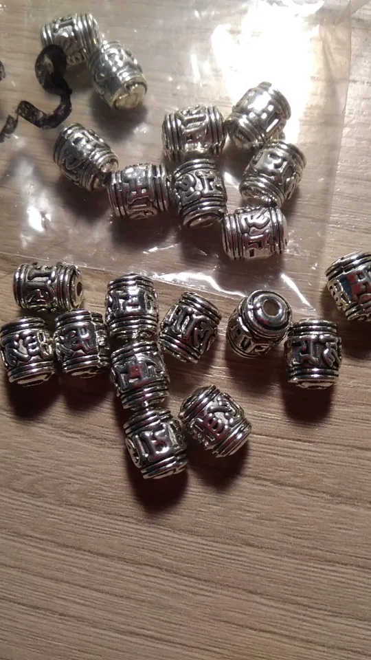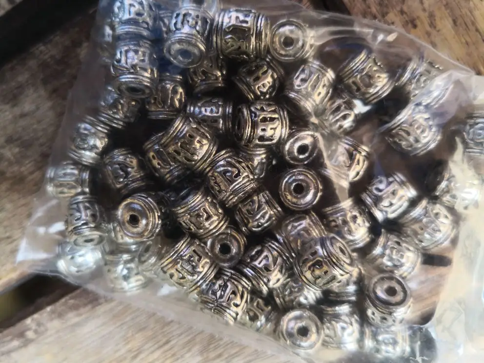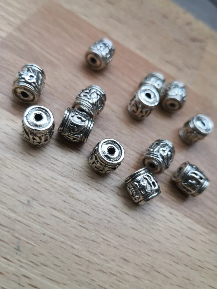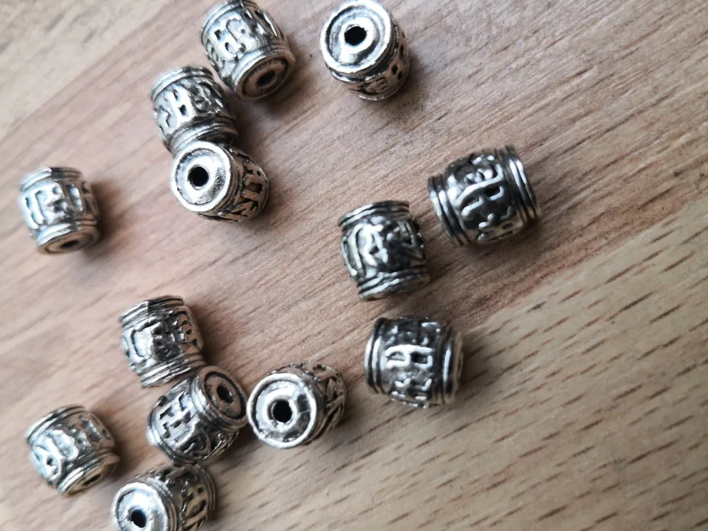 Perles spatiales en argent tibétain, 20 pièces, écritures bouddhistes tibétaines, baril, décoration unisexe, pour prière en métal, accessoires bijoux à bricoler soi-même
