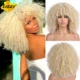 Perruque synthétique courte Afro crépus bouclés perruques avec frange pour les femmes noires Ombre brun sans colle naturel haute température cheveux Annivia