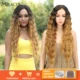 Perruques avant en dentelle Deep Wave Mid Part Ombre Blonde Tan bLack 6 couleurs disponibles 30 pouces Perruques avant en dentelle synthétique pour femmes Bella 100% Live Real Shot perruque synthétique