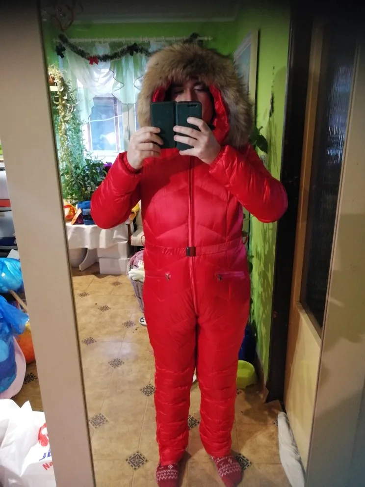 Personnalisé super réel fourrure 2022 hiver combinaison femmes blanc canard vers le bas vestes femmes ski costume doudoune en plein air costume survêtement