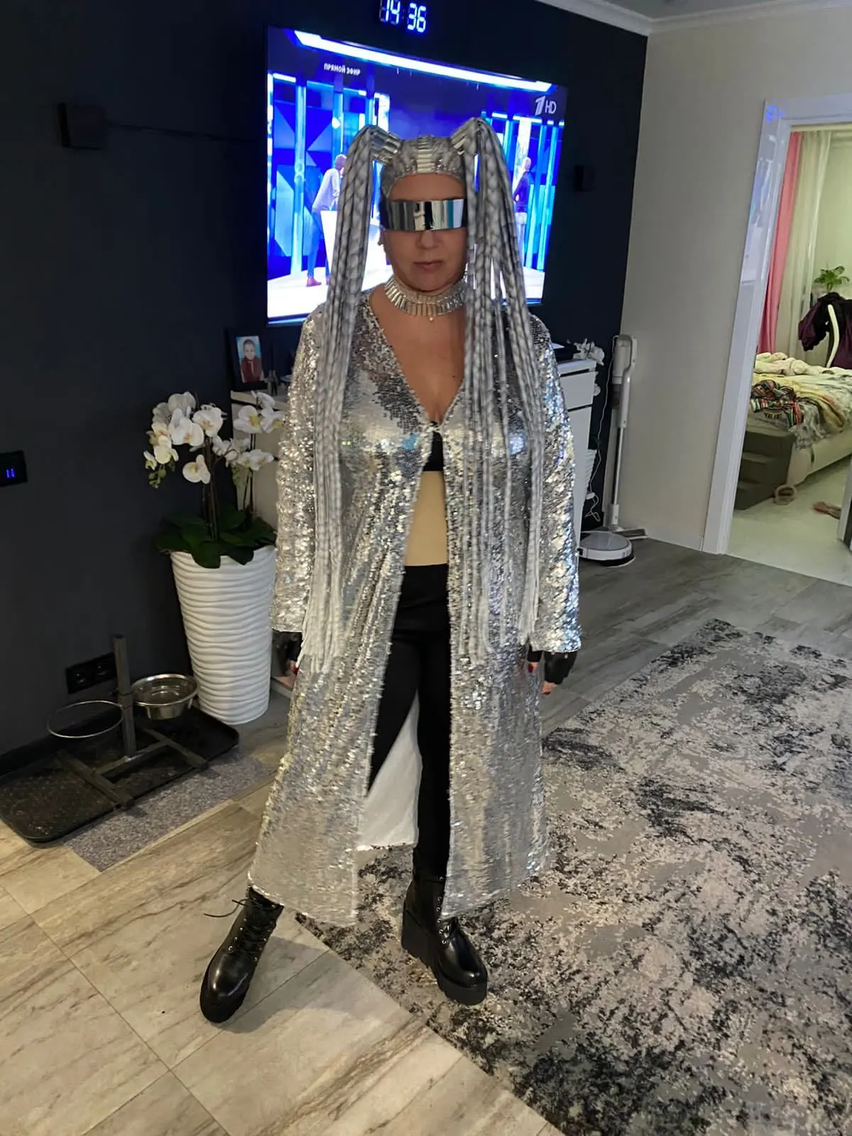Personnalité strass auto style perruque femmes cristal cheveux longs chapeaux discothèque fête coiffure danseur scène accessoires
