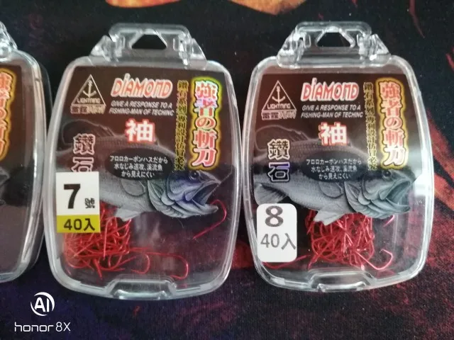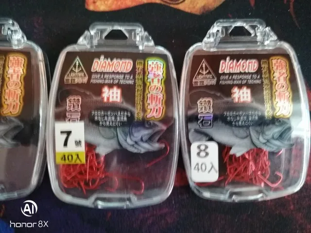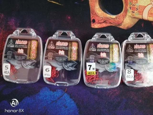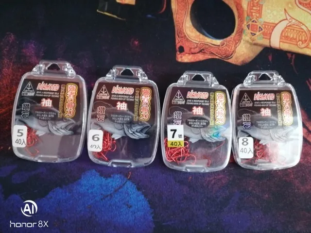 Petit Mini concours crochet de pêche or rouge poche H diamant japon crochets barbelé hameçon Lot 40 pièces taille 0.8-8 #