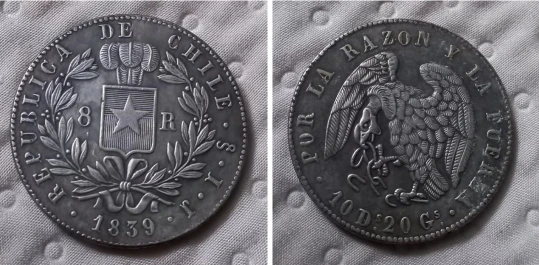 Pièce de monnaie du chili, 8 Reales, 39MM, 1839