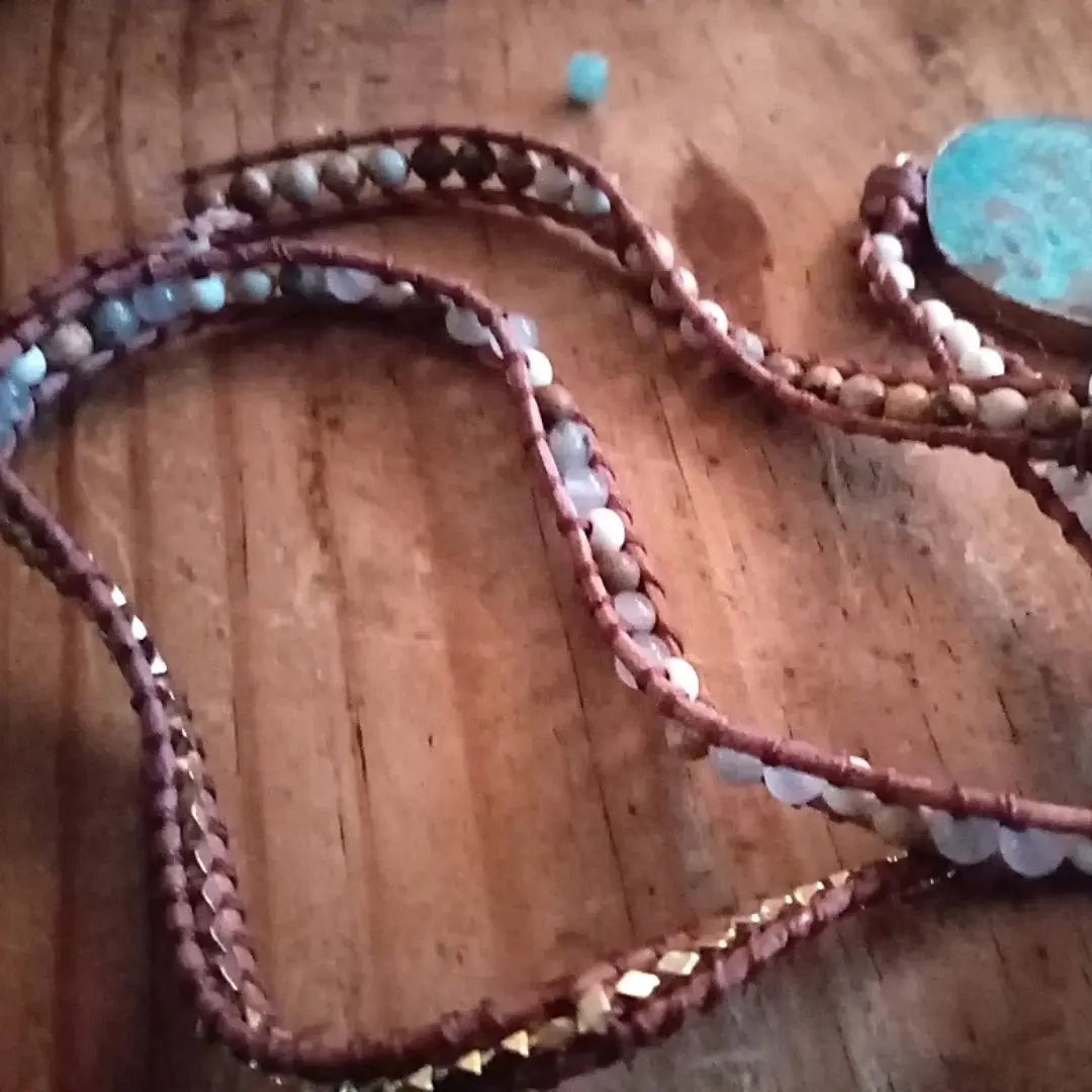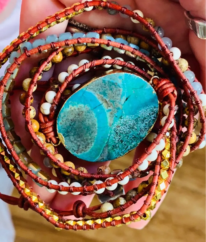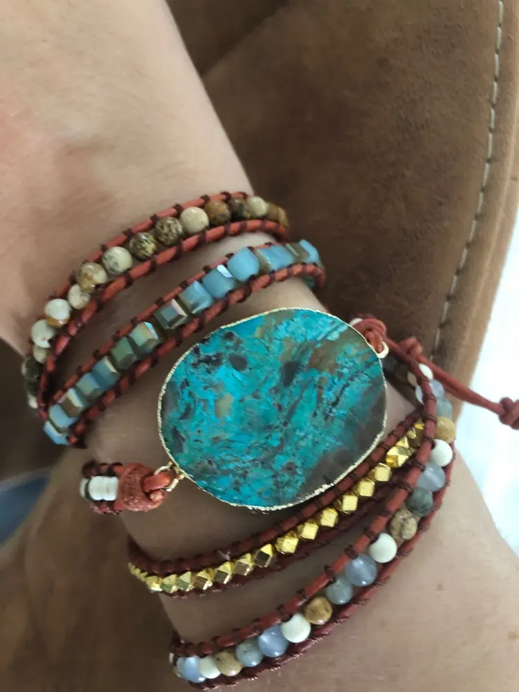Pierres naturelles mélangées uniques breloque en pierre dorée 5 brins bracelets d'enveloppement à la main Bracelet Boho femmes Bracelet en cuir livraison directe