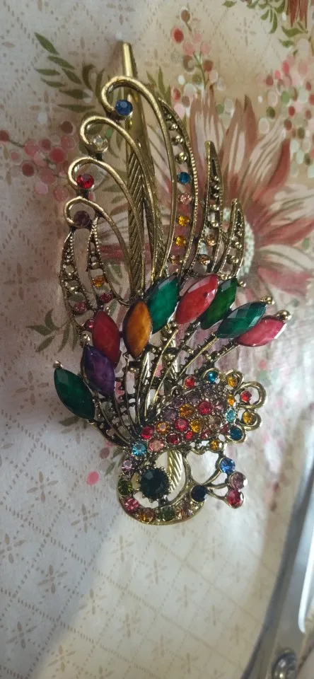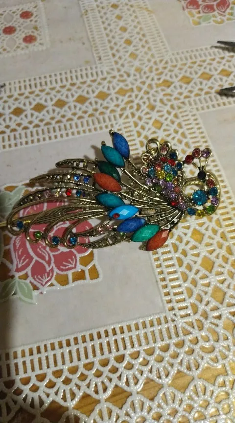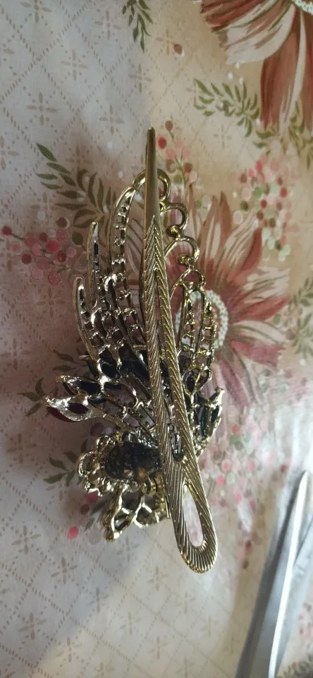 Pince à cheveux paon en cristal pour femmes et filles, rétro, bohémien, outils de beauté, bec de canard, épingle à cheveux