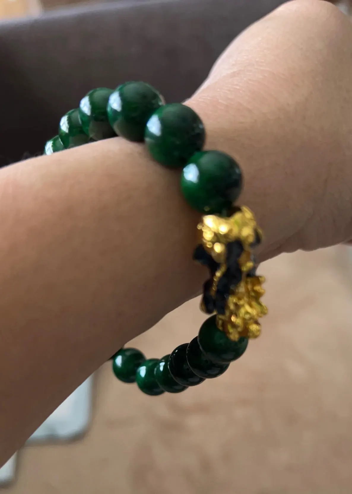 PIXIU-Bracelet doré en pierre verte, perles pour Couple, Bracelet énergétique, porte-bonheur, Feng Shui, Bracelets pour femme