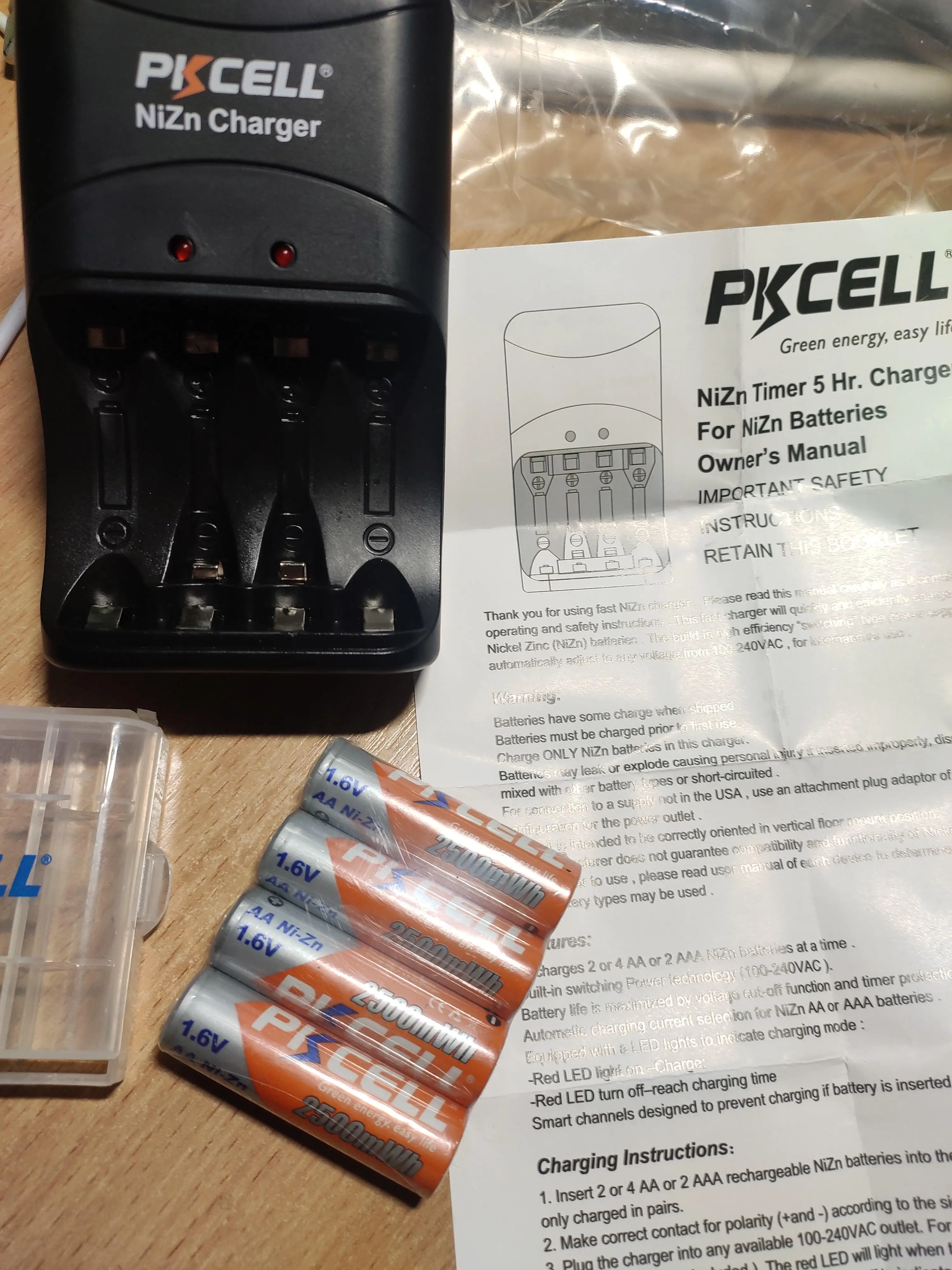 PKCELL – batterie rechargeable AA 2500mWh 1.6V, 4 pièces, piles NIZN, avec chargeur NI-ZN