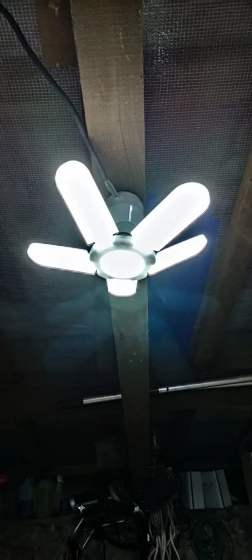 Plafonnier industriel pliable avec hélice de ventilateur, ampoule de 85W, E27, idéal pour un Garage ou un atelier