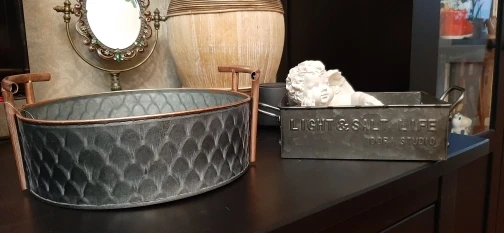 Plaque métallique rétro européenne avec poignées artisanat rond Vintage stockage Fruits plateau à pain décoration de la maison Restaurant de jardin