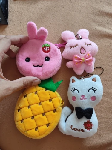 Pochette en peluche en forme d'ananas, porte-monnaie en peluche avec porte-clés, 3 tailles, 8cm, 10cm et 20cm