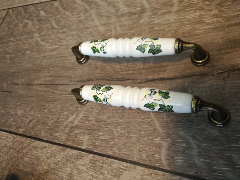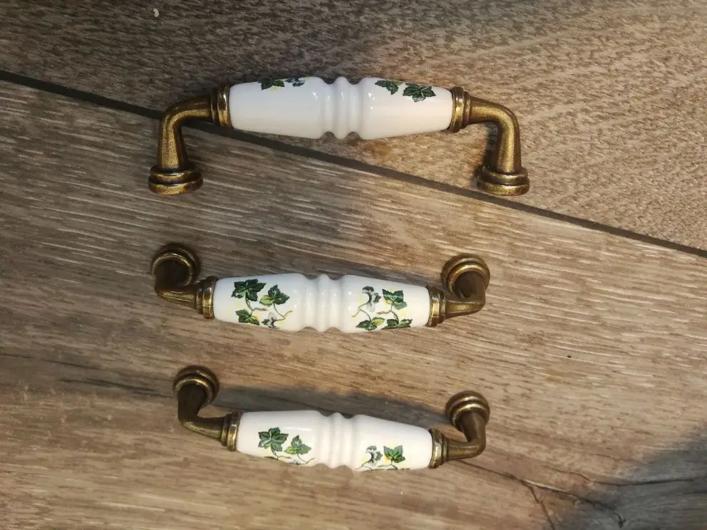 Poignée de tiroir, meuble de cuisine en céramique, meuble de jardin, casier de garde-robe à motifs de feuilles vertes, bouton de Table de chevet