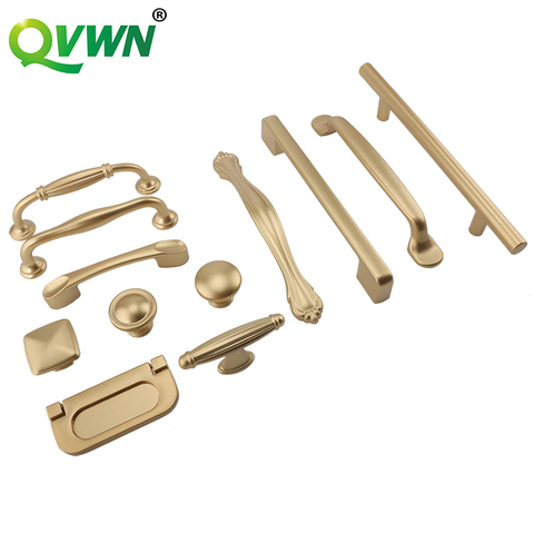 Poignées de meuble, Style européen or mat, quincaillerie de cuisine en alliage d'aluminium massif tire placard, boutons de tiroir, poignée de meubles