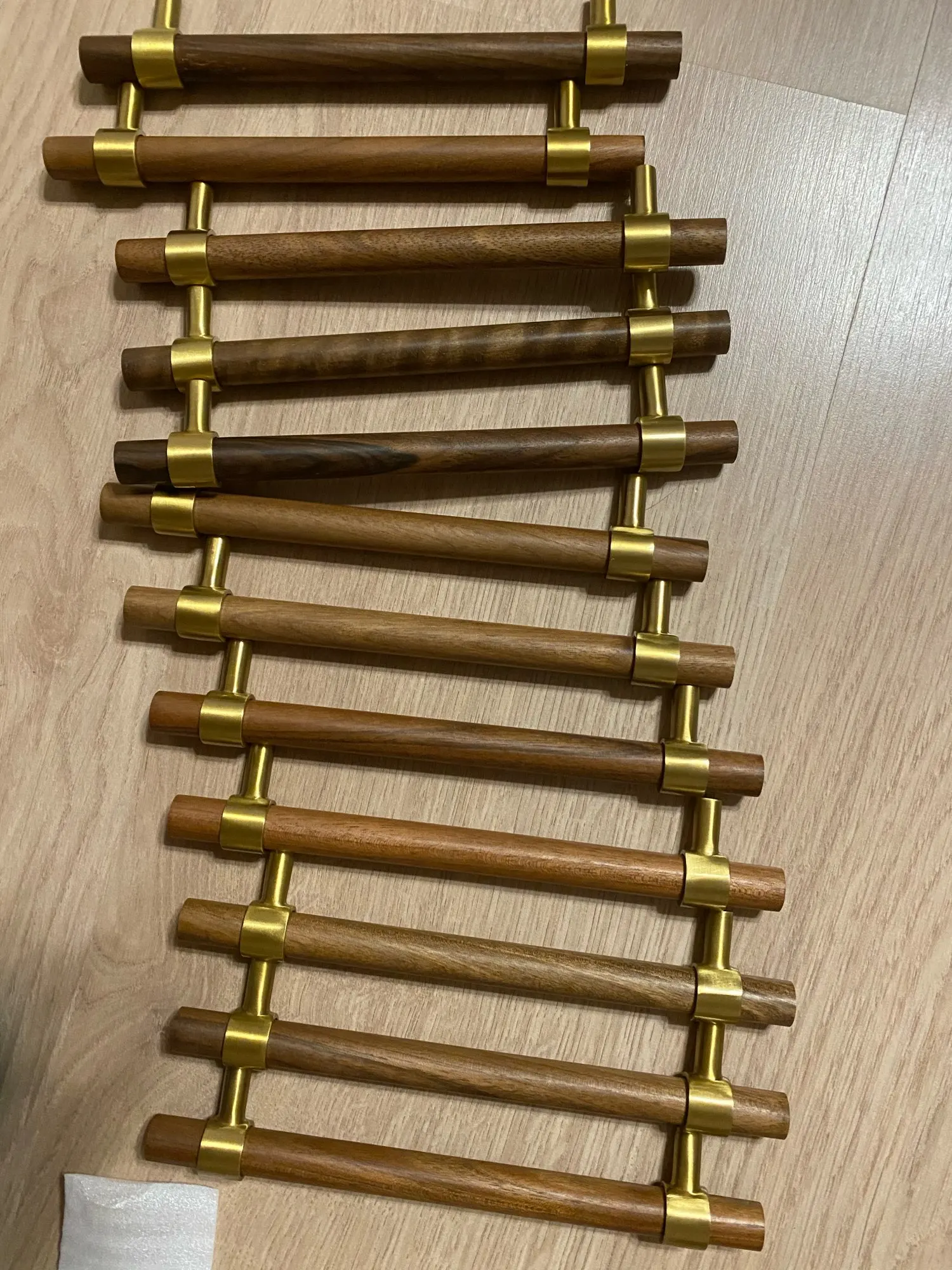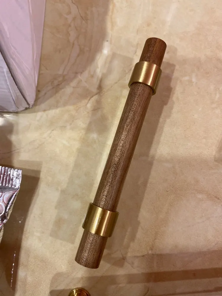 Poignées de porte en bois naturel + laiton, pour meuble de style américain pour tiroir, boutons et poignées d'armoire de cuisine