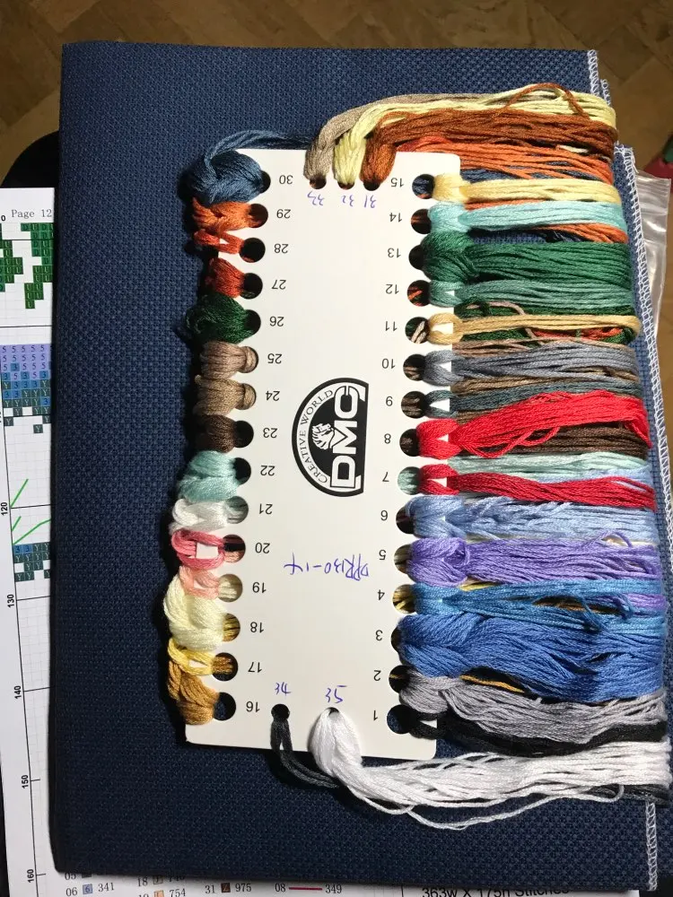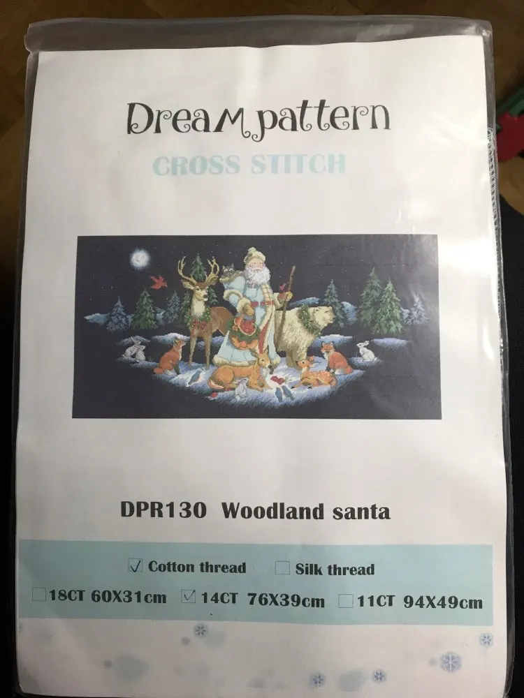 Point de croix du père noël en bois, paquet de fil de coton bleu profond, animal cerf 18ct 14ct 11ct, broderie