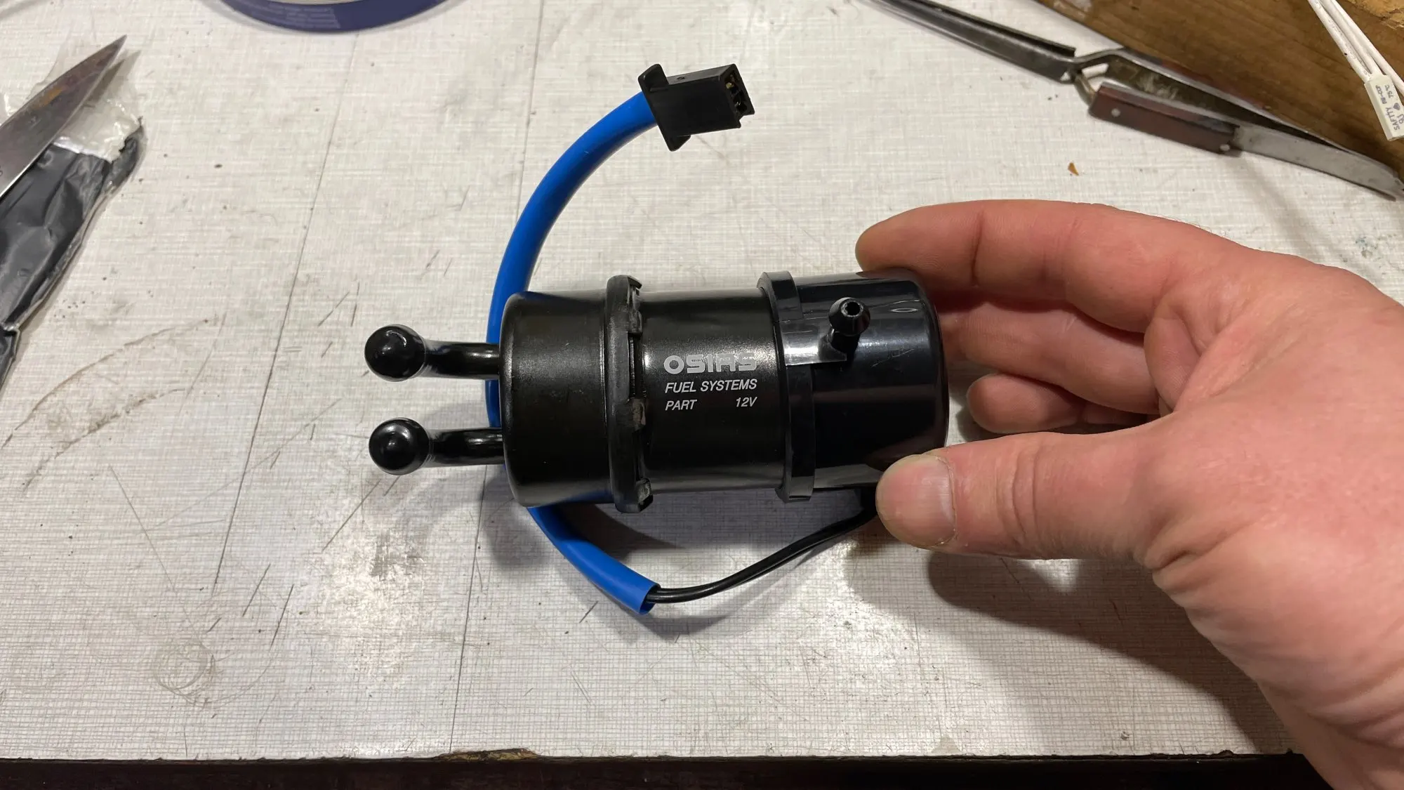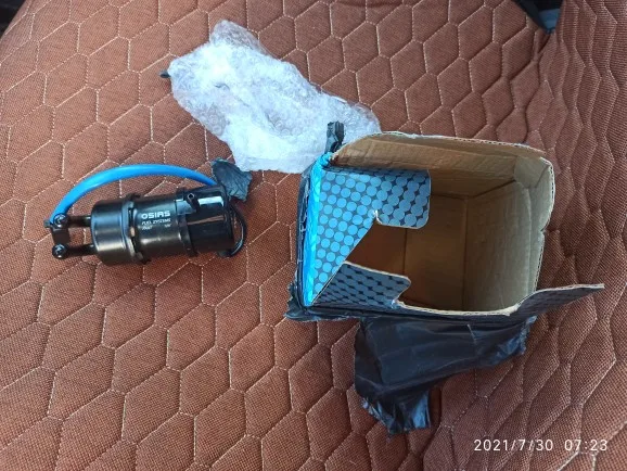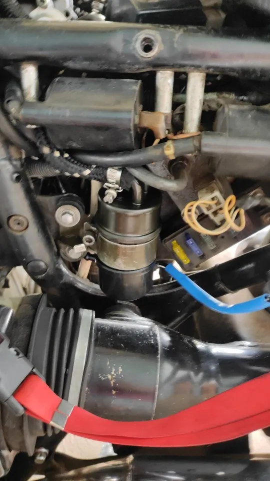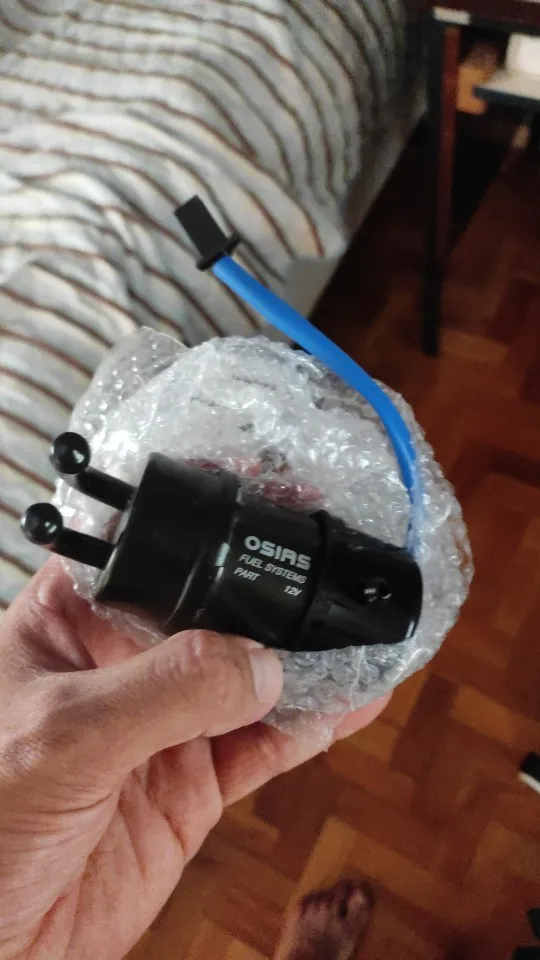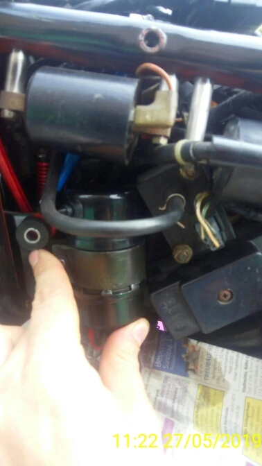 belle pompe avec coude a 90 nickel pour ma intruder 1400 car les autre pompe ont une sorti droite et faut bricoler ...malheureusement le capichon de la pompe touche le booster sensor et je n'arrive pas a la remonter ;( voir photo ...l'original a une encoche de passage ... voir dernier photo ...
