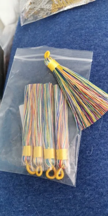 Pompon en soie et coton pour femmes, 5, pièces/ensemble, 80mm de Long, mélange de couleurs, brosse à trous pour pendentif boucle d'oreille, breloque, glands en Satin, bijoux à faire soi-même