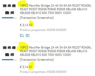 Pont redresseur 2A 4A 5A 6A 8A RS207 RS406L RS407 RS507 RS606 RS608 RS808 KBL406 KBL410 KBL608 KBL610 600V 700V 800V 1000V