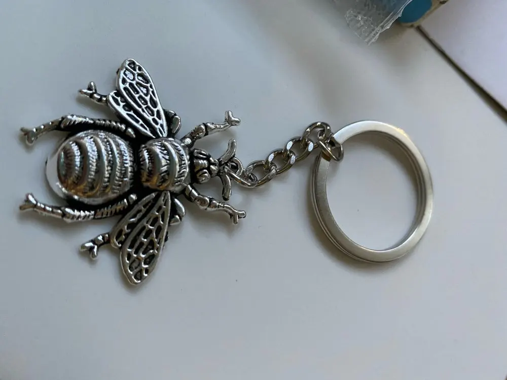 Porte-clés à la mode avec abeille miel, pendentif 30mm, 40x38mm, couleur Bronze argent, Souvenirs de voiture, livraison directe