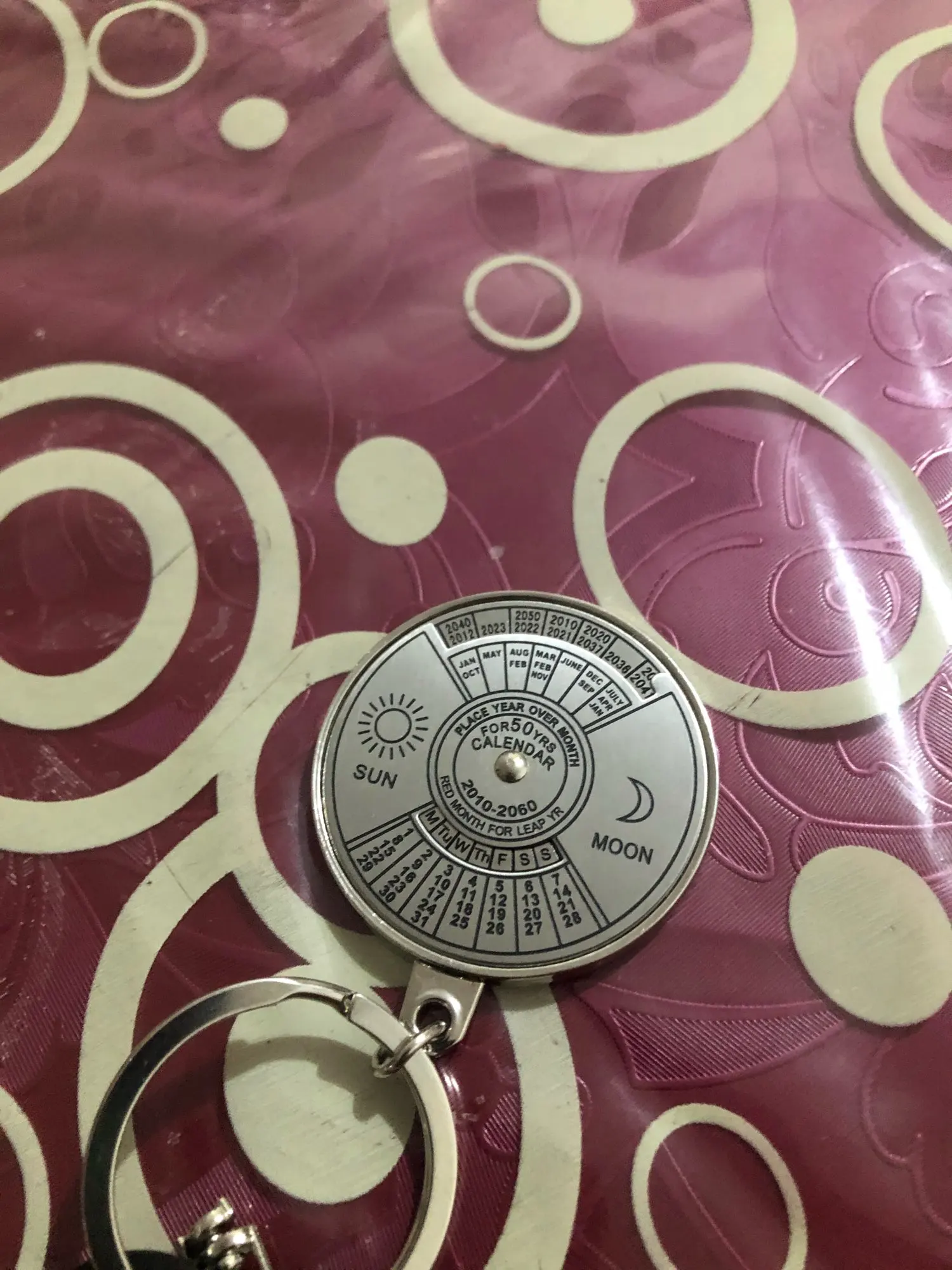 Porte-clés calendrier perpétuel 50 ans, 1 pièce, pratique, en alliage de Zinc, argent, outils manuels pour l'extérieur