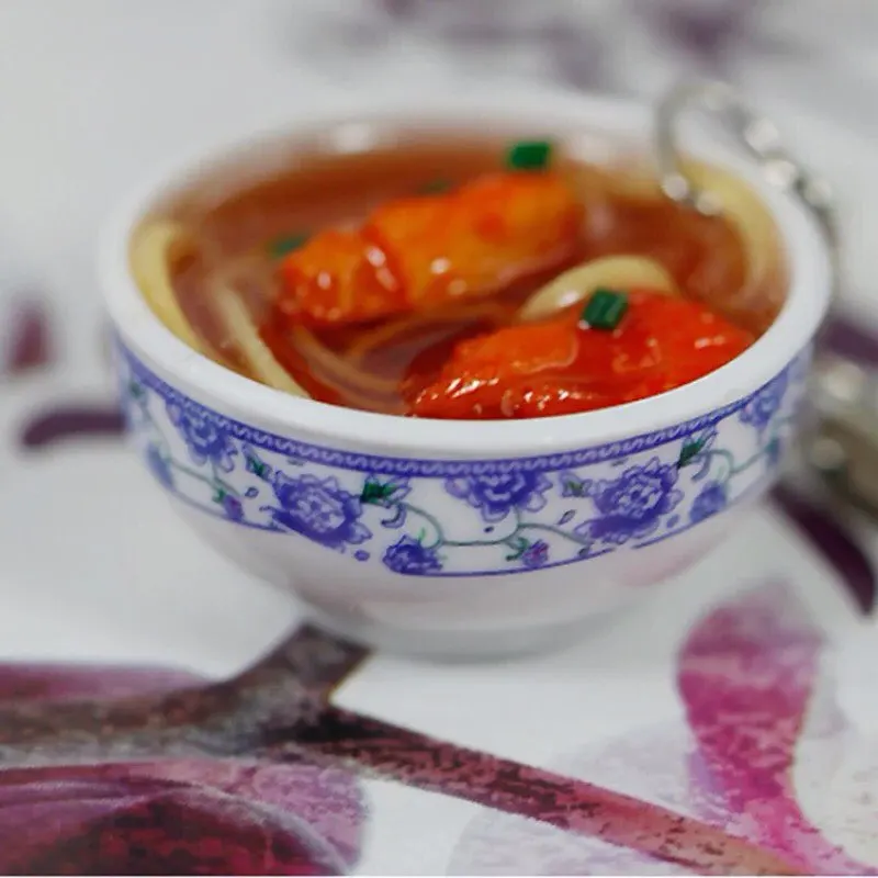 Porte-clés créatif pour nouilles, bol à nourriture en porcelaine bleu et blanc, Mini sac pendentif 1 pièce, offre spéciale