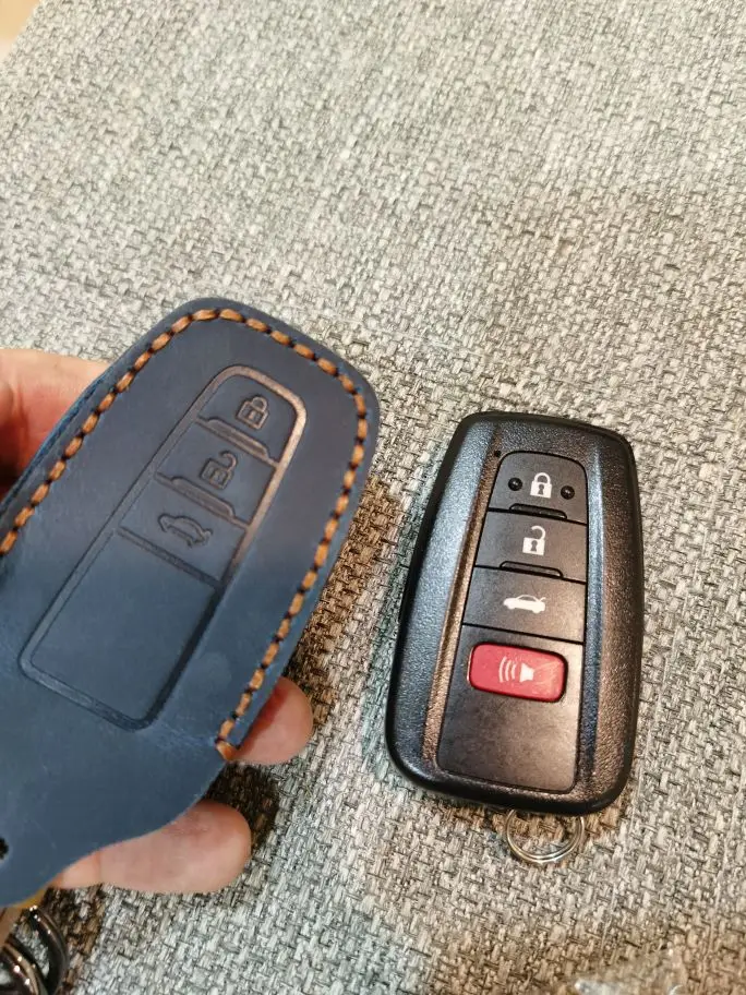 Porte-clés de voiture en cuir Crazy Horse, pour Toyota Prius CHR Camry 2017 2022, housse de protection de télécommande, sac, accessoire automobile