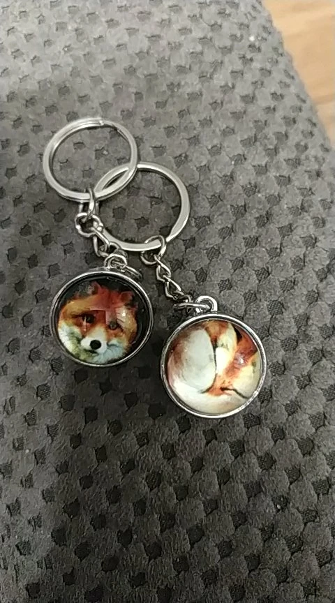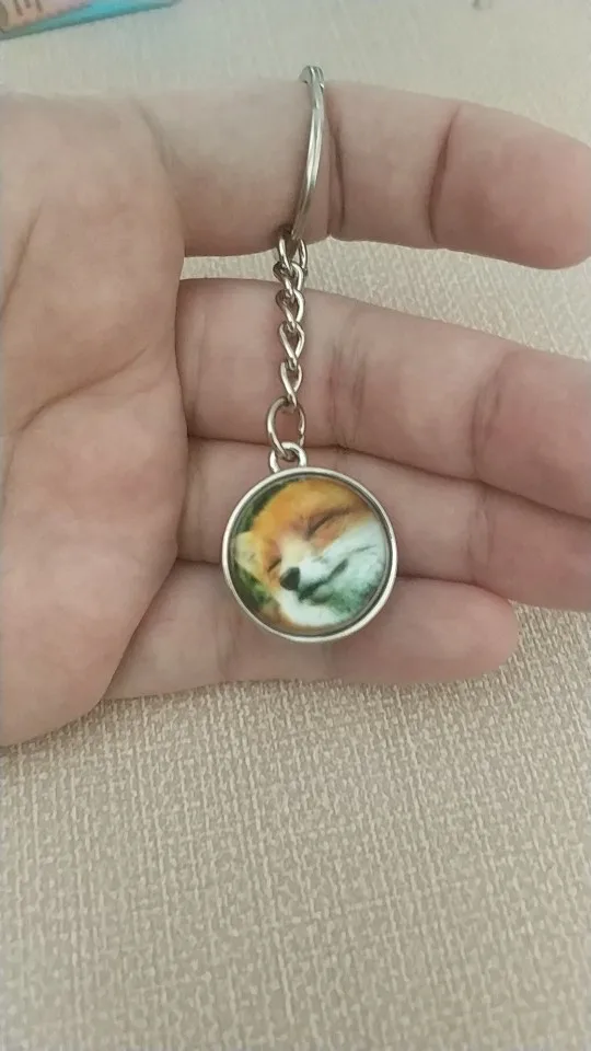 Porte-clés renard adorable, boule de verre, photo renard, Cabochon en verre, Double face, cadeau de noël, pour hommes et femmes