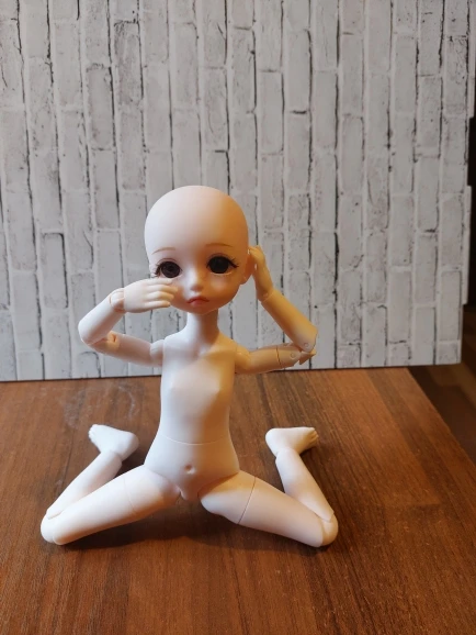 Magnifique petite poupée, excellentes articulations, très joli teint clair, adorable visage, j'ai hâte de la customiser! ;-D