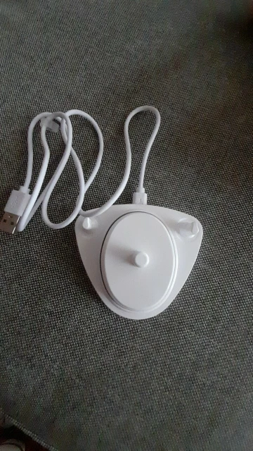 La forme ronde qui s'enfiche dans la brosse à dent est différente du chargeur original que j'ai mais le rechargement de la brosse à dent se fait normalement. Nous pourrons l'utiliser sur les prises usb de notre camping car.
