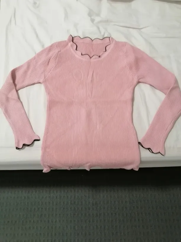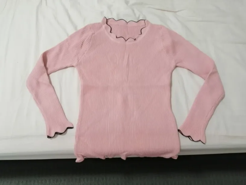 Printemps et automne nouveau noir et blanc intérieur tricot à manches longues pull bas chandails femmes mince serré col en dentelle