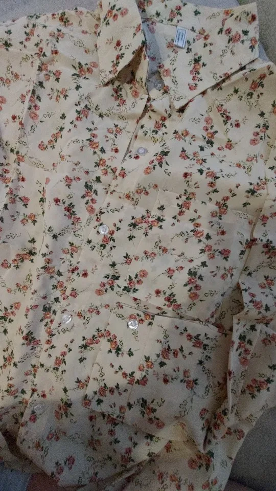 Printemps femmes Vintage ample chemise florale à manches longues bouton Up en mousseline de soie Blouse col rabattu automne bureau dame décontracté hauts