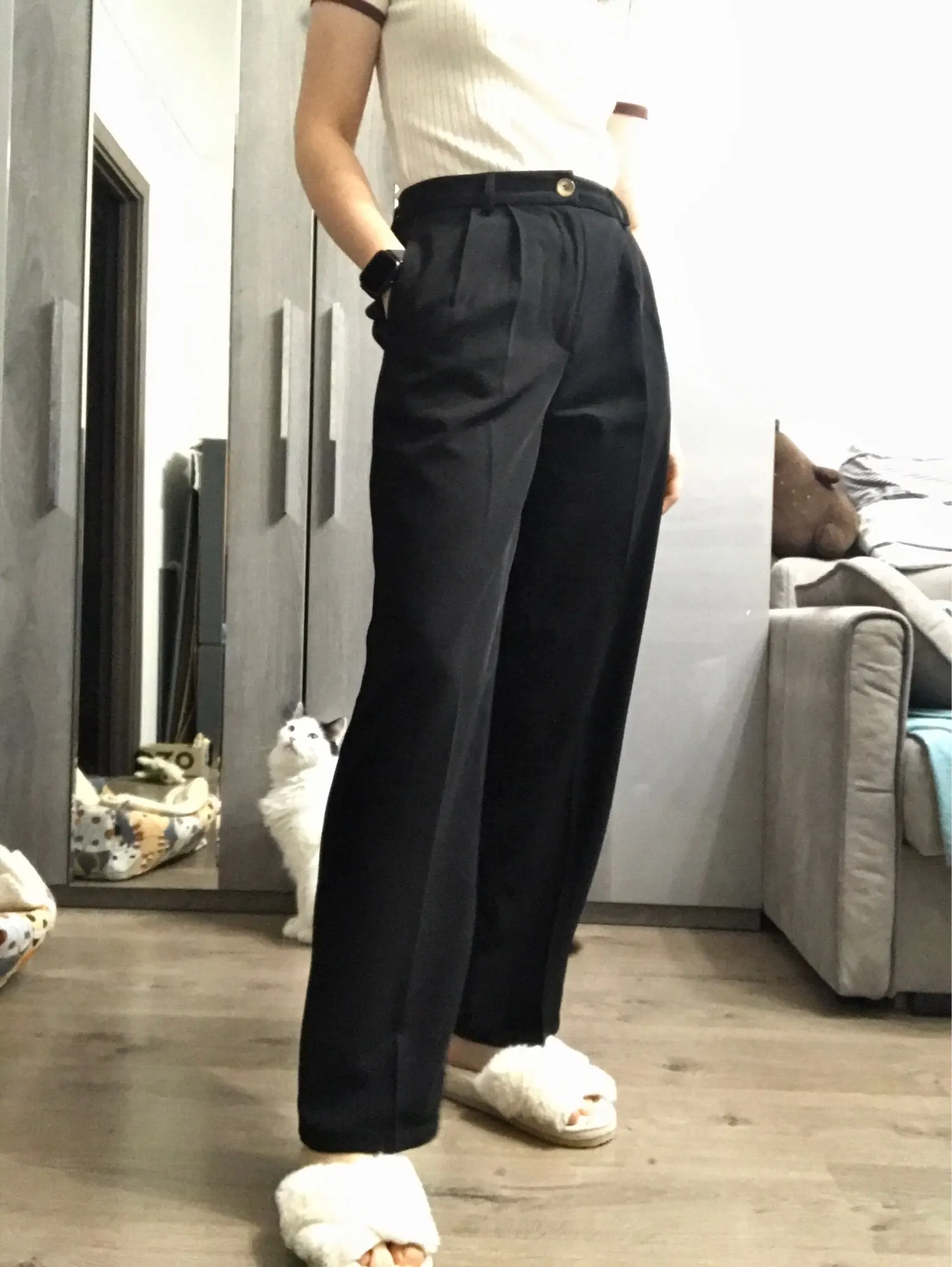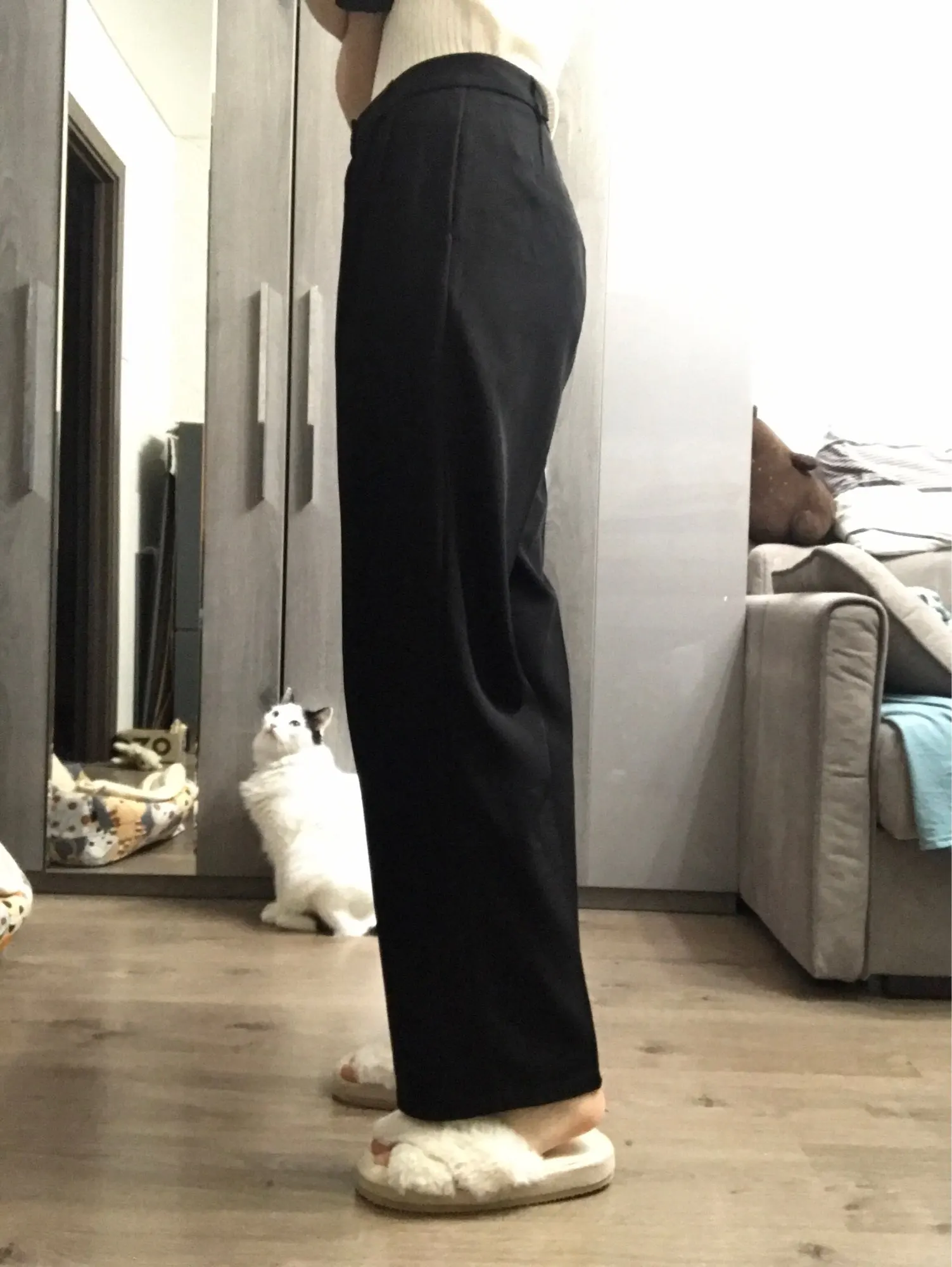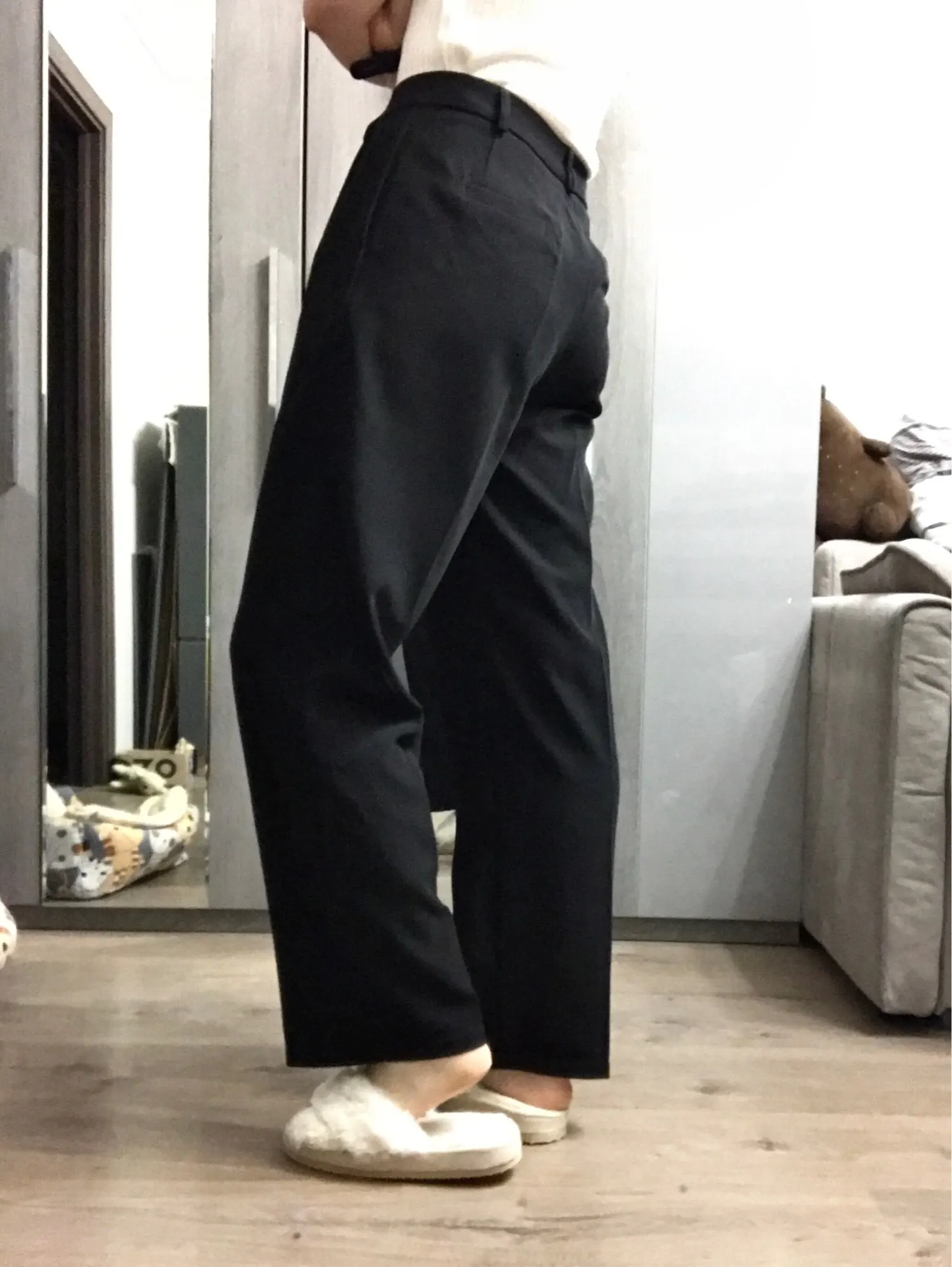le pantalon correspond à la photo, je suis très satisfaite. La matière est d'une excellente qualité pour le prix sauf petit détail sur la couleur qui ne correspond pas exactement. Elle est plus verte comme sur un pantalon militaire que taupe ce à quoi je m'attendais. Mais la couleur est tout de même très jolie et ce pantalon peut faire une très belle tenue. Je fais 165cm et il m'arrive tout pile en dessous de la cheville, je dirais qu'il touche la chaussure. Il est arrivé plus rapidement que prévu.