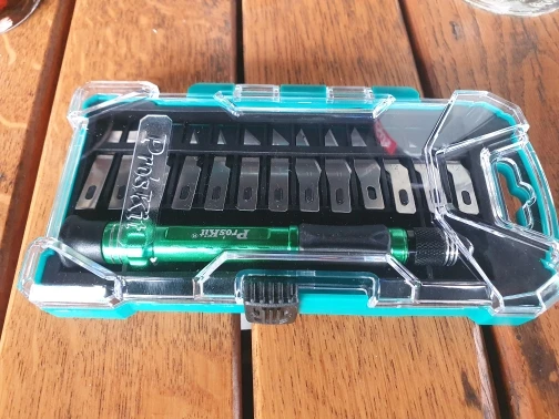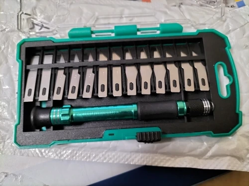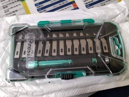 ProsKit – Kit de couteaux à manche en aluminium PD-398 + 13 lames interchangeables, boîte compacte, excellent ensemble de couteaux